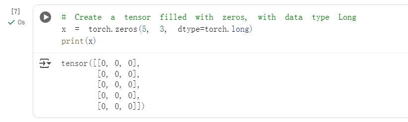 | 图7 创建long型全0张量 | 图8 继承旧tensor属性创建全1张量 |