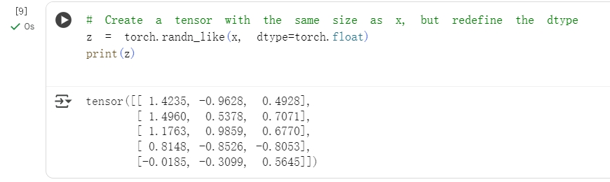 | 图9 借用旧tensor形状与属性创建随机数值张量 |